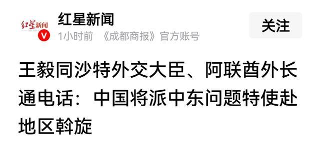 王毅外长在通话中明确表示,中国将派中东问题特使赶赴地区国家进行外交斡旋 。这是中方在当前危急关头作出的重要决策,意味着中国将从“呼吁停火”转向“一线促和”,以更直接的方式参与解决危机。